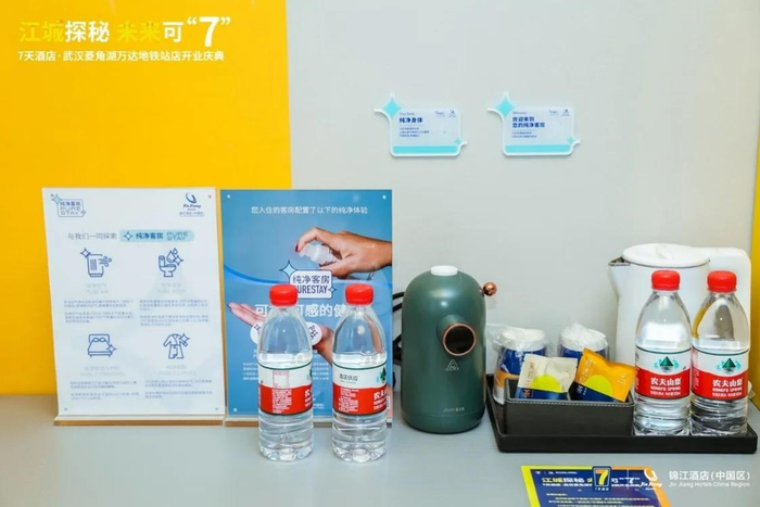 以7天酒店·武汉菱角湖万达地铁站店为例,在标配产品的基础上,酒店还引入了智能语音客控系统、智能门锁、智能电视、智能机器人等选配的智能设备模块,为客人提供全方位的智能家居体验。
