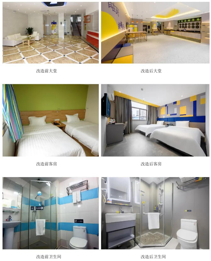 目前,7天酒店3.0版本在全国各地都有毛坯新建和改造项目落地。毛坯标准单房造价(含公区)仅为5.36万元/间,翻牌单房造价(含公区)低至2.4万元/间。7天酒店·南宁民族大道麻村地铁站店【新7天】,房量115间,老店全面升级翻新综合单房造价(含公区)5.1万元,该店改造后6个月,RevPAR提升68元,综合OCC增加43%,中央预订率达78%,实现酒店品质、业绩的全面提升。