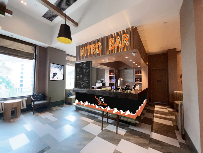 同万达悦华酒店核心定位设计的共享空间一致,漫步酒店空间,入目皆是乐趣。文化走廊像是充满乐趣与享受的新潮世界,大堂共享空间全面升级,NITRO CAFE BAR 是不容错过的专属打卡区域,不仅有主题电影随时共享,还有滑手贴心奉上特调,不在雪场的每一刻也都是纵享无限乐趣的完美享受。
