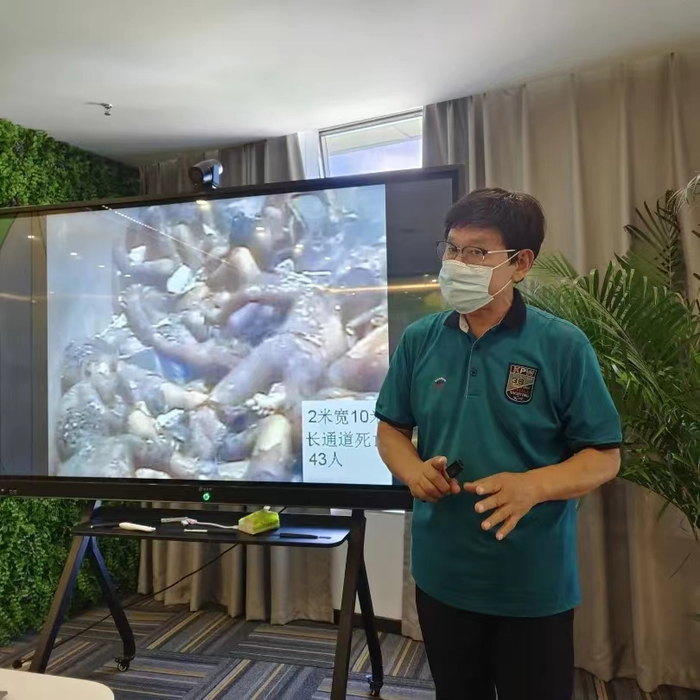 培训一开始,杨教授就通过一组关于“国家应急管理部火灾通报”中的数据,紧紧揪住了大家的心。统计结果显示:2021年,全国火灾预防很不乐观,其中:接报火灾74.8万起;死亡1987人;受伤2225人;直接财产损失67.5亿元。接着杨教授通过大量令人触目惊心的视频画面,展示了火灾的残酷性,总结了造成家庭火灾的三种主要原因:第一种原因,人们消防意识淡薄,很多老百姓认为自己家里不会着火,火灾和自己没有关系;第二种原因,遇到火灾缺乏逃生自救技能;第三种原因,家庭缺少必备的安全器材。