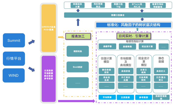 市场风险限额是银行等金融机构制定风险管理政策的具体量化,表明了银行对期望承受风险的上限,是银行风险管理人员积极防范风险的重要监控基准。因此,实时进行风险指标计算,有助于市场风险管理人员作出精准的风险预估,以支撑银行做出更及时、准确的应对决策。