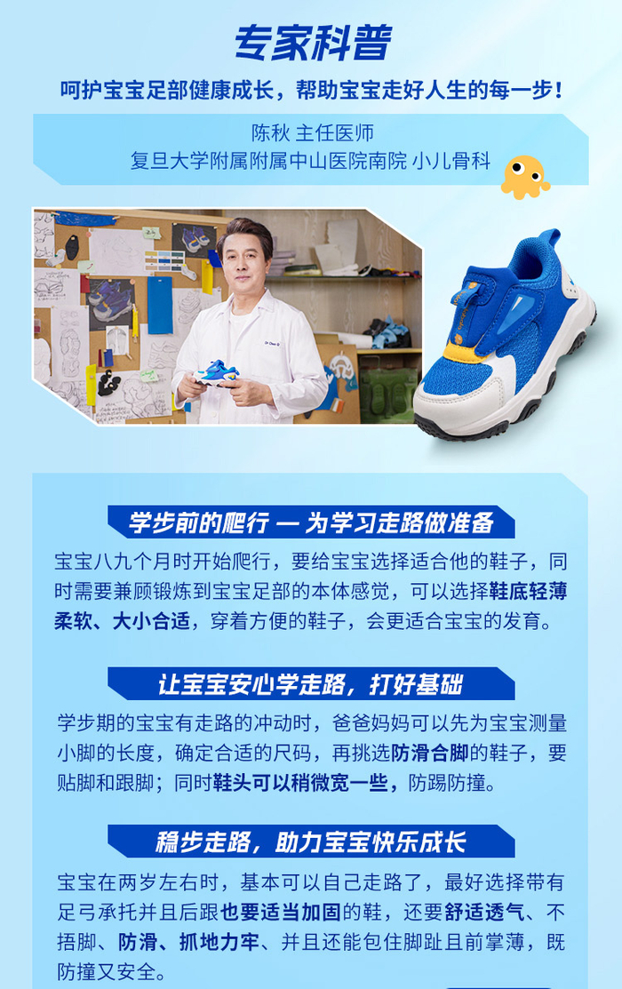 复旦大学附属中山医院南院小儿骨科的主任医师陈秋指出呵护宝宝足部健康成长很重要,在白皮书中还为广大宝爸宝妈科普了宝宝学步的相关知识,助力父母更好地帮助宝宝度过学步困扰期。