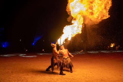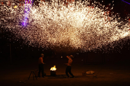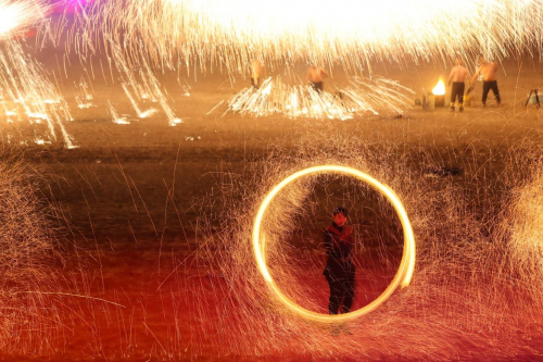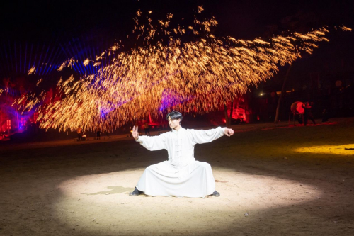 没看够?还有!每天21:00城寨沙场的非遗打铁花准时上线,一朵朵铁花在夜空中绽放,满场惊叹声不绝于耳。不仅如此,每天300多场不间断演出,只能说,超值!