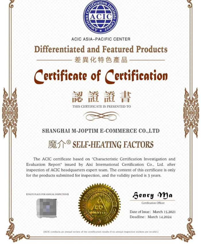 ACIC是在美国注册的国际第三方独立认证机构,其认证广获WTO164个成员国认可。其差异化特色产品认证,从第三方角度为魔介的独特创新产品提出评价认证,助力品牌深耕国际市场。