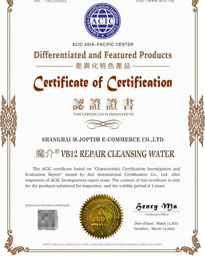 ACIC专家组通过对于魔介公司及产品的详细调查了解,并严格审核其所提供的委托加工合同、产品原料报关单、产品专利证明、产品安全检测报告、ISO操作规范、设计生产销售管理体系认证、GMPC等许可证明文件。确认两款产品原材料质量、生产加工过程等符合ISO、GMPC等相关生产标准要求,配方组成科技含量高,产品独特性明显,给出了“差异化特色产品”认证结果。(内容转载: ACIC国际认证)
