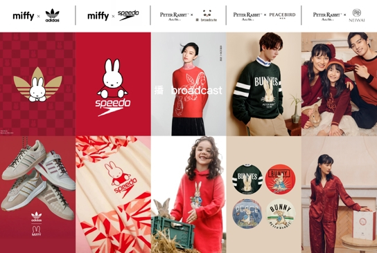 与虎年的“虎虎生威”不同,2023年的小兔子形象更具软萌、俏皮和治愈感。兔年新禧,米菲、比得兔与三叶草、speedo、内外、太平鸟、播 broadcast、播 broadcute等时尚品牌先后联手推出兔年限定系列,品类涵盖成衣、鞋履、内衣/家居服、童装,为萌趣不费力地注入时尚基因,每一件都不止是兔年才值得get的单品。