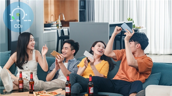 在空气的处理上,中央空调负责调节冷热和湿度,新风系统负责层层过滤,引入新鲜空气。此外,大金中央空调还能通过空气传感器,与大金新风系统联动,解决多种空气问题,例如CO2联动模式,引入新鲜空气,室内不憋闷,PM2.5联动模式*1,可以防污染、排异味。