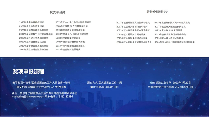 在2023中国金融科技高峰论坛召开期间组委会同期举行第四届“金科奖”颁奖典礼,对推动金融科技发展,金融科技行业的领军者,促进金融科技创新中做出突出贡献的单位和个人给予认可,并进行宣传和表彰。