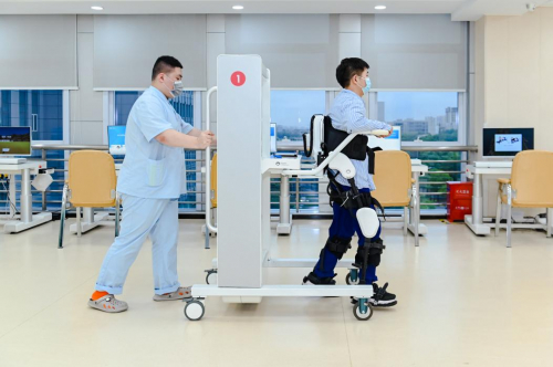 尤其是康复机器人物联港的应用,是上海永慈康复医院“双碳”布局中的又一场景。这是亚洲最大、中国第一个康复机器人物联港,通过物联网技术手段,实现设备、患者、康复治疗师互联互通、数据共享,便于治疗师精准、高效地制定康复方案。在这里,可同时容纳50人次治疗,只需配备3名治疗师,即可实现一对多的康复训练。较之于劳动密集型的传统康复业务,大大节约了人力成本。