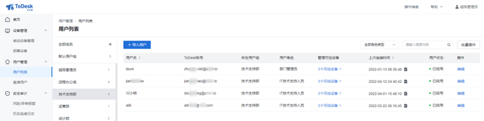 在控制台中,支持企业根据自身业务所需进行用户分组。企业绑定员工账号后可以统一为他们分配分组和角色,例如企业可以按IT、运营、设计等部门划分,架构非常清晰,管理起来也会更轻松。