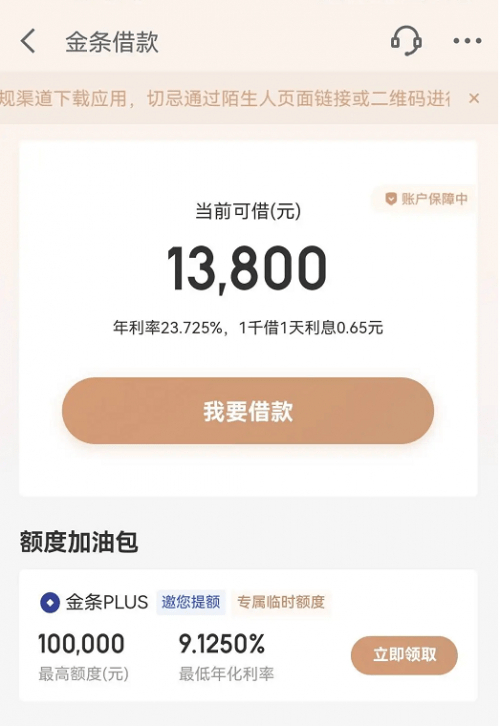 京东金条此类头部产品的出现,满足了广泛存在的现金借贷需求。而网络借贷寻求比较可靠的借款平台,也应是每一位用户铭记的准则。无论从何种渠道借款,都应做到按需借款、按时还款,才能够在顺利解决需求的同时,为未来留足“后路”。在使用京东金条过程中,京东金融App提醒用户,要提高防骗意识,日常保护好银行卡及身份证号等个人信息;凡是陌生人以任何名义要求转账汇款的,一定不要进行操作。注意保护收到的短信验证码,不报给陌生人,不在屏幕共享状态下操作。
