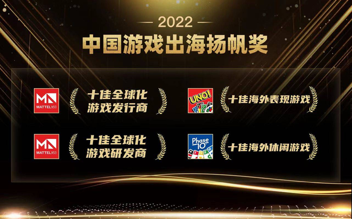 2022 扬帆奖共设十四大奖项,美泰163包揽四大荣誉,是对公司综合研发实力、运营创新能力和市场成绩的全面认可。自成立起,美泰163 便致力于打造常青的游戏品牌,专注通过游戏,连接世界 (Connecting the World Through Play),为全球用户带来一流的娱乐体验。此次荣获 “十佳海外表现游戏奖” 的《UNO!手游》和“十佳海外休闲游戏奖”的《Phase 10 手游》便是其中的杰出代表。