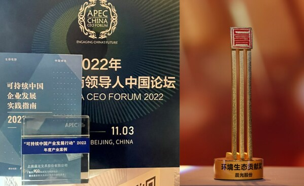 晨光入选APEC“可持续中国产业发展行动”2022年度产业案例,并荣获“2022 第一财经·中国企业社会责任榜”环境生态贡献奖