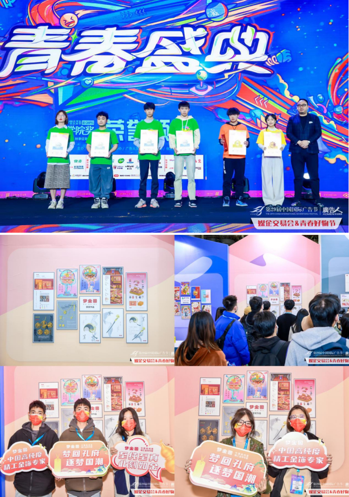创意荣誉,满“园”硕果。冬月鹭岛,梦金园亮相大广节学院奖2022秋季青春盛典,为顶尖青春创意颁发荣誉。青春就是年轻人最好的“诱捕器”,场外梦金园优秀作品展区吸引众多青年驻足,共赏创意,共话国潮。