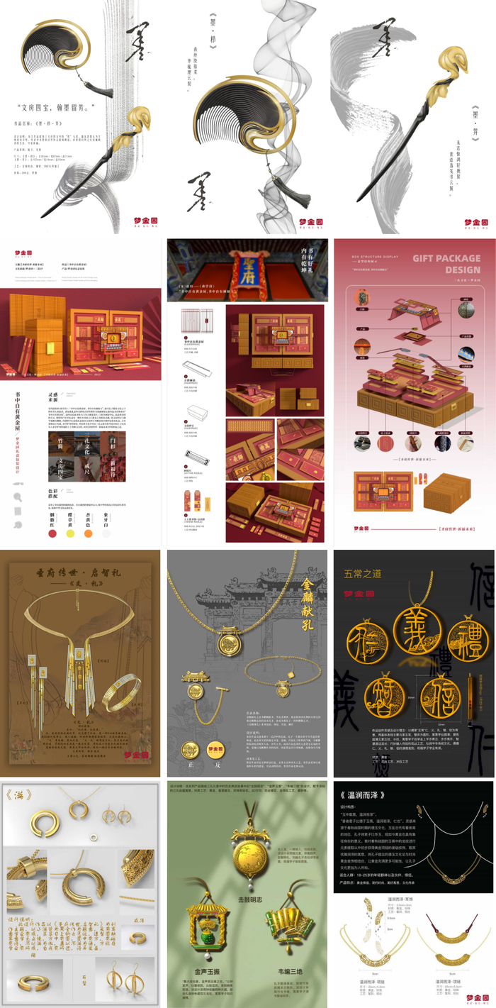 梦金园×三孔×学院奖,当潮流珠宝美学遇上千年儒家文化,看国潮新风尚邂逅青春好创意,跨界联动打破圈层壁垒,一经发题便吸引了无数青年学子的灼灼目光。“千淘万沥虽辛苦,吹尽黄沙始到金”,来自30个省份547所高校的青年学子逐梦而来,在一次又一次的精意覃思下,最终诞生6274件创意作品,为传统文化描绘出“青春面孔”,彰显年轻一代的新思考和新探索。