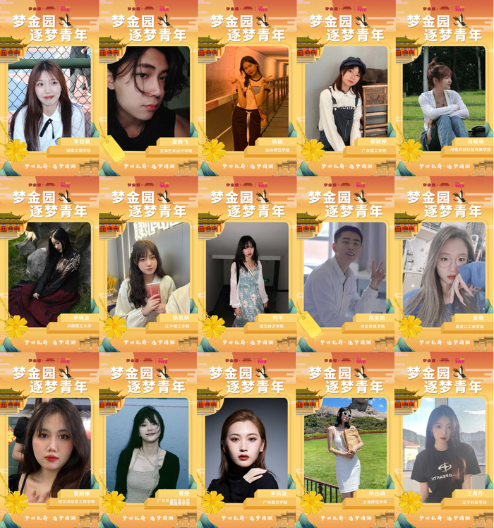 双向奔赴才是最好的拥抱,梦金园因年轻而来,百位青年为“梦”心动。【梦金园·逐梦青年】征集令一经发出,便收到了来自28个省市167所高校近300名学生的热情响应,最终遴选出100所高校100+位【逐梦青年】。青年学子为梦金园代言,为国潮发声,通过年轻人影响年轻人,助力渗透年轻圈层。