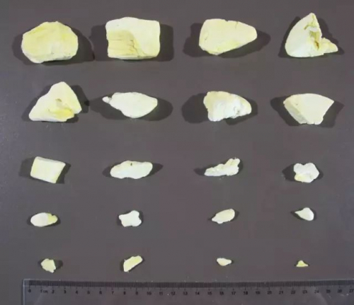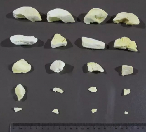 百草味大体上较为规整,每一块大小基本相同,棱角清晰,碎渣很少。