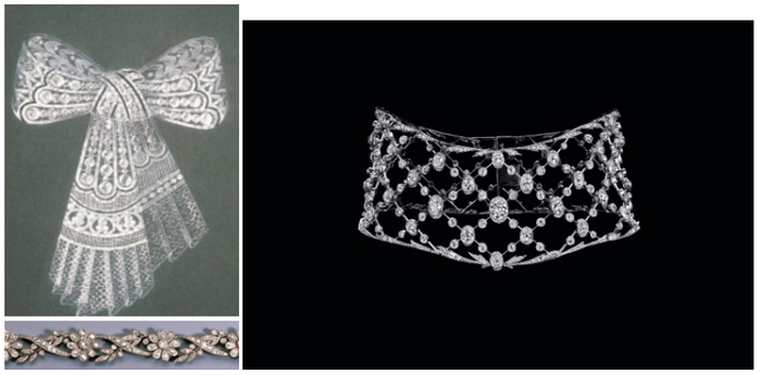古董作品:CHAUMET三角胸衣蝴蝶结胸针手绘图
