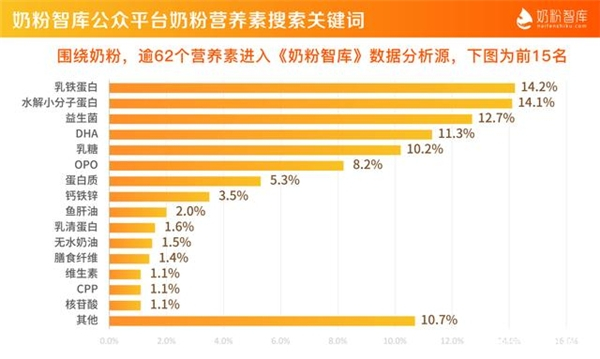 自进入防控新阶段以来,婴幼儿“免疫健康”成为父母们关注热点。在营养方面,免疫类元素热度持续走高,其中尤以乳铁蛋白为代表。据奶粉智库《微信公众平台用户搜索关键词数据报告》中显示,新一代消费者在选择奶粉时,逾50个营养素中,乳铁蛋白的搜索热度最高,已成为当下婴配奶粉市场备受关注的重要营养。