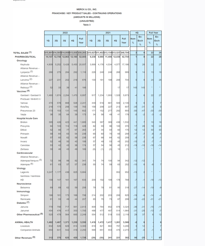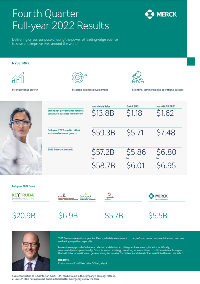 据《美国商业资讯》2023年2月2日报道--默沙东公司公布2022年第四季度和全年财务业绩,2022年第四季度和全年业绩持续强劲增长。