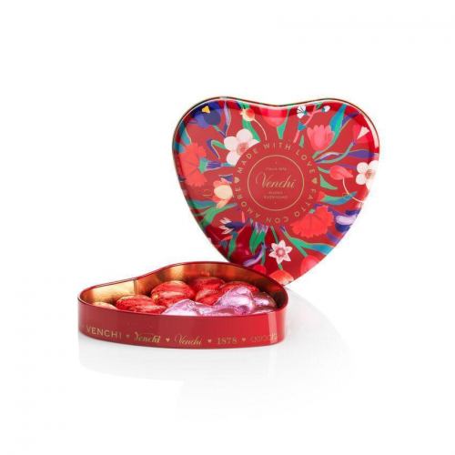 大小两款心形散装铁盒精选两款Venchi巧克力,特浓黑巧克力与牛奶巧克力,把最经典的甜蜜送给特别的TA! 巧克力彩条,心跳成诗,定格真爱时刻。简单大气的多样礼盒选择,每一口都是满足的爱!