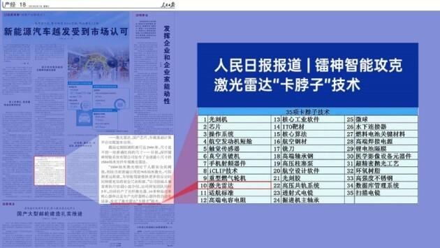 2022年9月7日,人民日报刊登《新能源汽车越发受到市场认可》的文章,其中介绍道,镭神智能创始人胡小波带领团队攻克了我国被“卡脖子”的激光雷达技术问题。