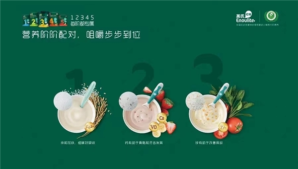 “12345 每阶都专属”。为了使复杂多样的喂养方案简单化,英氏忆格用数字12345作为每阶符号,并配以鲜明的产品设计、具象的包装说明、有序的货架陈列。父母可由宝宝的显著体征获知宝宝所属的阶段,进而找到最适合宝宝的对应辅食喂养方案,减少反复对比和挑选的成本,实现高效、轻松、便捷的辅食喂养,摆脱喂养焦虑。