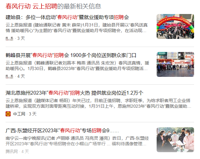 据了解“春风行动”是由国家劳动和社会保障部发起的一场帮助全社会促进就业的活动,2023年开春全国各地也都在通过不同形式组织开展“春风行动”。