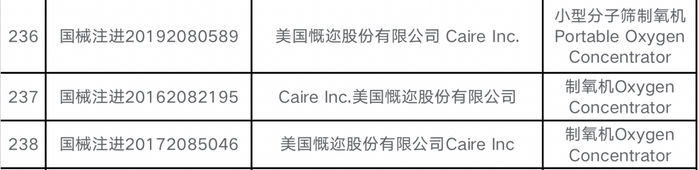 其中亚适Caire不仅获得国家药品监管局批准上市外,作为全球制氧设备行业的领导者,也获得过美国卫生保健认可委员会(ACHC)认可,并通过美国食品和药物管理局(FDA) ,欧洲医疗器械法规(欧盟 MDR) ,中国食品和其他国家地区监管机构认证批准。