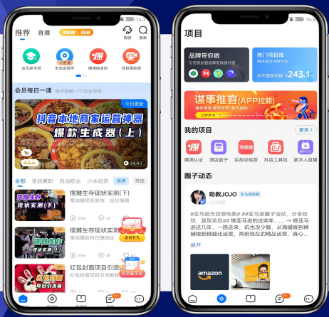 谋事APP为创业者建立了热门项目库,与阿里、腾讯、抖音、快手、百度、美团 等头部品牌方建立长期、深度合作。在需求端,为普通人对接最底门槛、最轻资产的优质创业项目,并由专业团队陪跑指导,帮助用户做好项目。