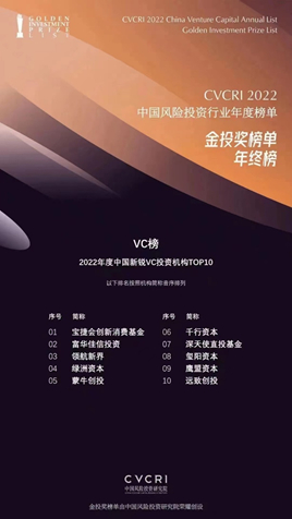 蒙牛创投荣誉登上CVCRI·2022中国风险投资行业金投奖年终榜