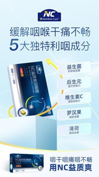 新一代功效润喉糖NC益质爽,5大独成分缓解咽干咽痛咽不畅