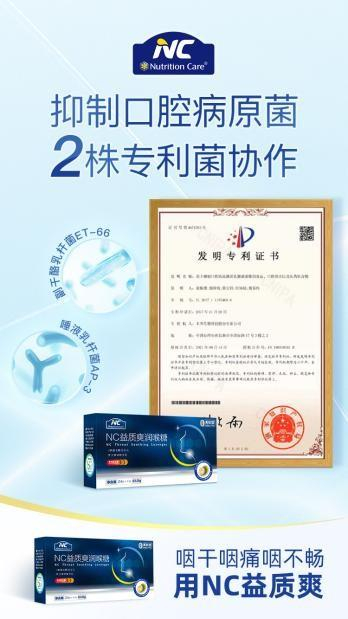 NC益质爽润喉糖作为新一代功效型润喉糖,添加了2株来自锦旗生物的专利益生菌,同时,使用了华诚生物研发的罗汉果甜苷来提供甜味。无糖配方、添加益生菌等在润喉糖市场上都是开创性的举措。
