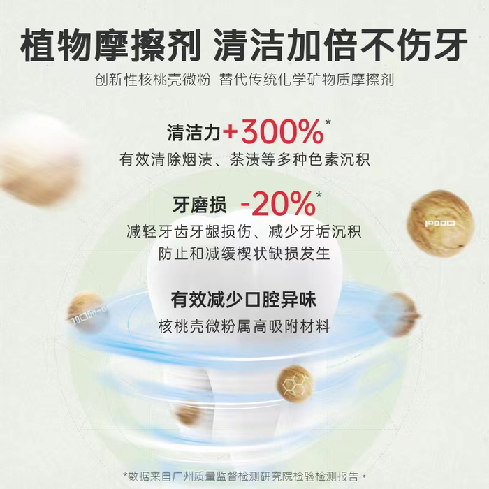 李时珍医药集团科研人员经过多年的努力,突破了这一堪称“牙膏黑科技”的技术难题。他们利用天然植物核桃壳,经特殊工艺加工,研制出了一种新型牙膏专用摩擦剂—-核桃壳微粉,该技术属全球首创,同时正在申请国家发明专利。