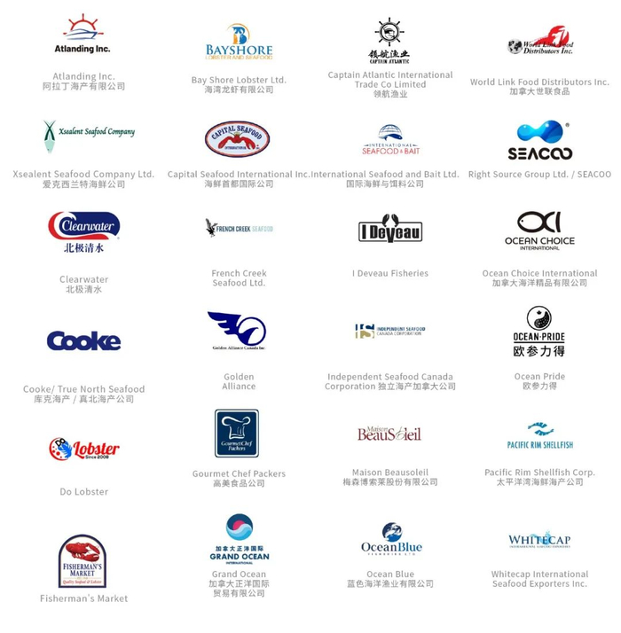 此次论坛专门介绍的加拿大知名龙虾出口企业包括:海湾龙虾有限公司(Bay Shore Lobster)、领航渔业(Captain Atlantic International Trade)、海鲜首都国际公司(Capital Seafood International)、高美食品公司(Gourmet Chef Packers)、国际海鲜与饵料公司(International Seafood and Bait)、加拿大海洋精品有限公司(Ocean Choice International)、加拿大世联食品(World Link Seafood)、爱克西兰特海鲜公司(Xsealent Seafood)。(以上排名不分先后)