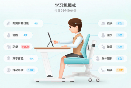 科大讯飞AI学习机T20 Pro这次的新品新增或优化了六大功能,包括全局护眼、坐姿守护、智能监测专注力、计算能力和巧算功能;电子书功能;硬件升级超大护眼屏。在AI学习辅助之外,更加大了对孩子健康等方面的关注。以坐姿守护为例,科大讯飞AI学习机T20 Pro能够实时检测包括低头、歪头、驼背、趴桌等10个不良坐姿。此外,新增的TOF距离传感器在检测到孩子坐姿不良、环境抖动时,将实时记录不良检测项并直观展现孩子与屏幕的距离,全时段守护孩子的脊柱健康,避免坐姿不良对生长发育的影响。