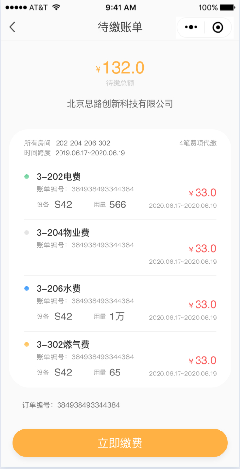 也可自动抓取水电表数据后,自动算费,并生成账单,批量查看推送,如下图。