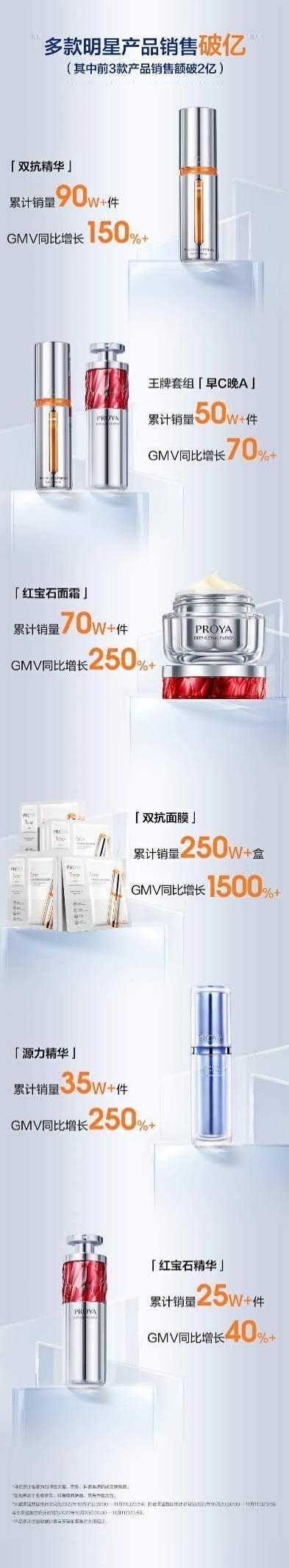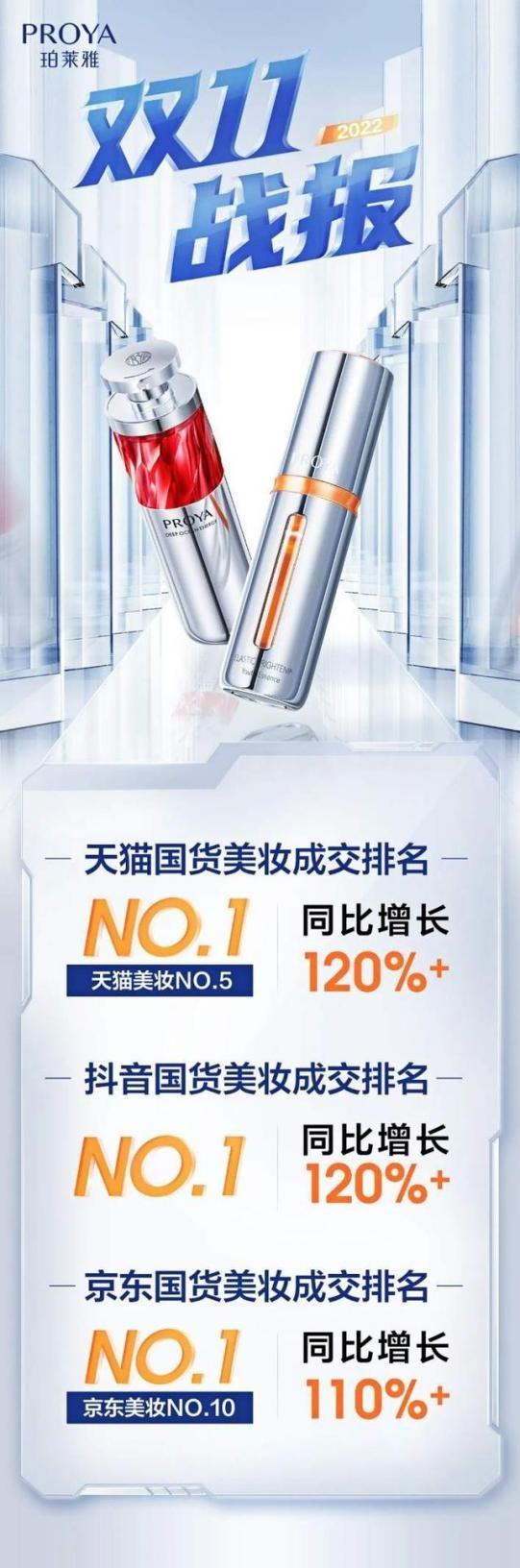 根据天猫公布的2022年双11美妆店铺战报,珀莱雅多款产品的销售额都超过亿元,以及排名前10的产品有5款国产产品,珀莱雅凭早C晚A套组和双抗精华2.0占据其中2席。而在面膜品类中,珀莱雅双抗面膜也首次进入TOP10。从综合销售数据来看,从10月31日到11月11日,珀莱雅官方旗舰店排名第5,仅次于欧莱雅、雅诗兰黛、兰蔻、OLAY,成为天猫美妆top5中唯一国货品牌,也是国货品牌第一。