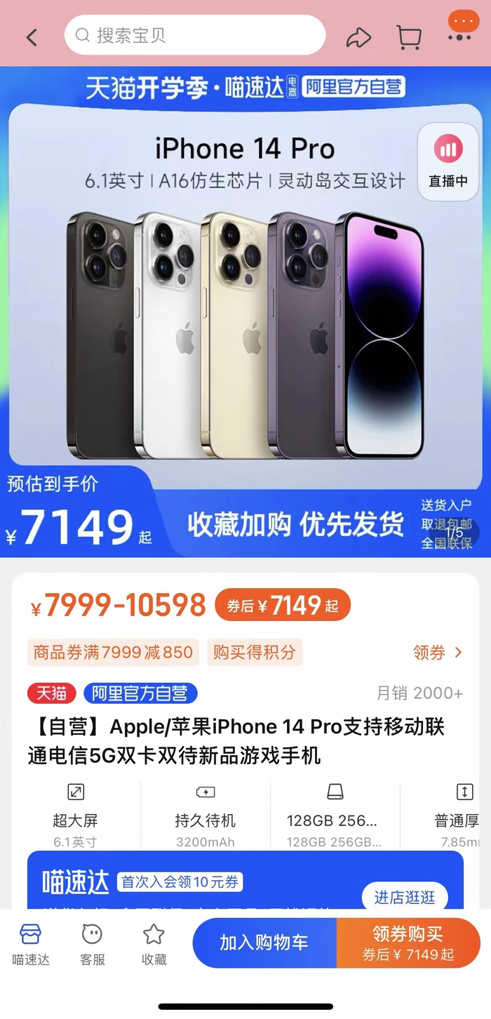 当开学季碰上情人节,实用性、性价比成为大学生群体的最热话题。记者了解到,喵速达电器给出了更大的降价力度:2月5日-2月12日期间,以iPhone 14 Pro 128G为例,参与喵速达官方的开学季活动,最高降价达到850元,到手价仅7149元,比苹果线下门店还优惠150元。而在手机品类的选择上,大学生们最青睐的手机品牌为苹果、荣耀和小米。