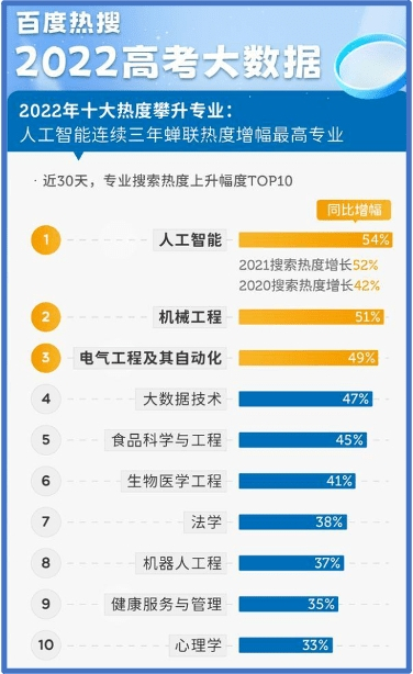 值得注意的是,机械工程专业和电气工程及自动化专业,这两门位列2022百度TOP10热门专业的课程内容也包含在本AI人工智能课中 。这样的课程设计不仅能让学生们学习到前沿且热门的专业知识,也有助于帮学生将独立知识点进行联结,融会贯通,形成相应的认知网络。