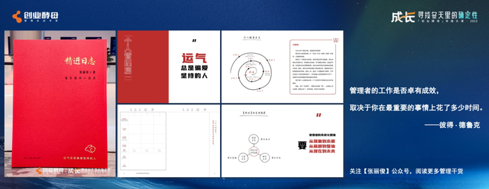 以上这十个问题就是我想跟大家分享的内容,这是写给我自己,也是写给大家的课题。我们要关注自己的成长,做到精进。你一定要思考今天什么事情最重要,第二个最重要的事情怎么干,第三个跟谁干,要达到什么目标,还要再总结一下哪做得好、哪做得不好。这也是我出《精进日志》的原因,这本书花了我两个月的时间。