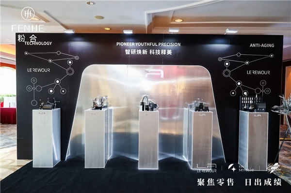 下一季度即将面世的莱摩新品也设立了产品概念展示区,无论是充满未来科技感的银色装置,还是酷炫黑的产品包装设计,无不体现莱摩“高阶御龄、功效护肤”的品牌定位和“科技加乘年轻态”的品牌理念。