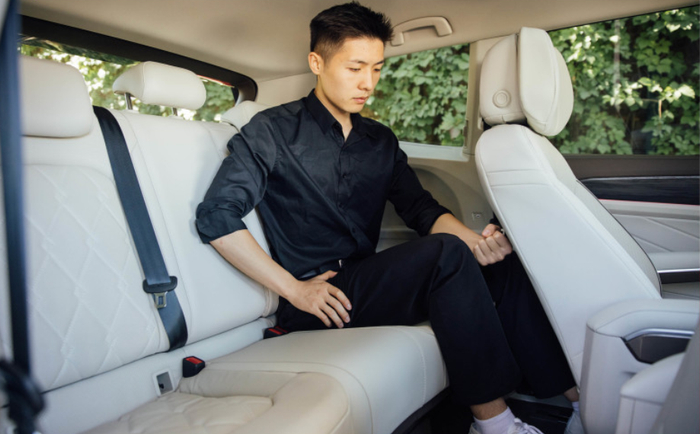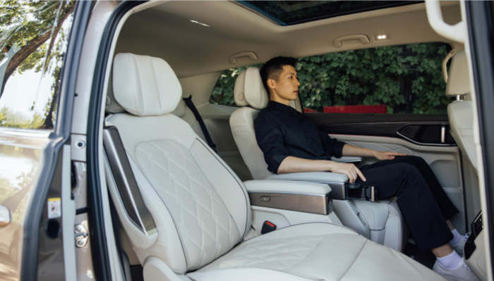 威然的座椅布局是2-2-3,它的第二排也是“头等舱”座椅,有腿拖,可以放平,舒适程度自不必说。我特意去查看了配置,GL8要到38.39万以上才配备带按摩加热通风座椅,威然36万就配备了,并且座椅3*3按摩,杯托,充电等一应俱全。而且从里面才能发现,它的后排不仅有隐私玻璃,甚至还有手动遮阳帘,这点值得点赞。