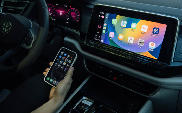 这里还要补充一下,威然全系配备了CarPlay和CarLife,而且可以支持无线连接,配合手机无线充电功能,真是可圈可点。