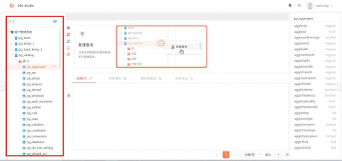 1、模糊查询: SQL Studio支持对库、表以及视图、函数、存储过程、物化视图等的模糊查询,哪怕只记得一个字母,也能搜索出所有关联的库和表,方便进一步筛选。