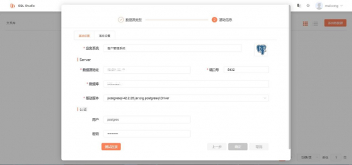 选择数据类型PostgreSQL,填写数据源的基本信息。