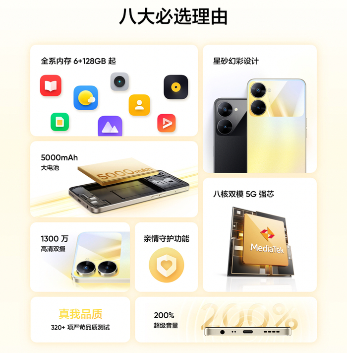 6+128GB大内存+5000mAh大电池,体验全面越级