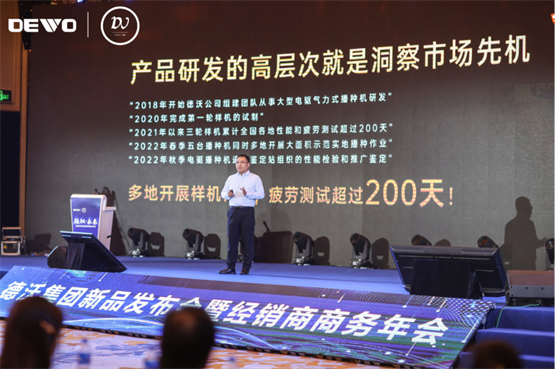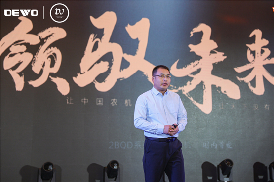 发布会上,德沃集团营销副总裁程建波,进行了电驱高速播种机首发演讲。