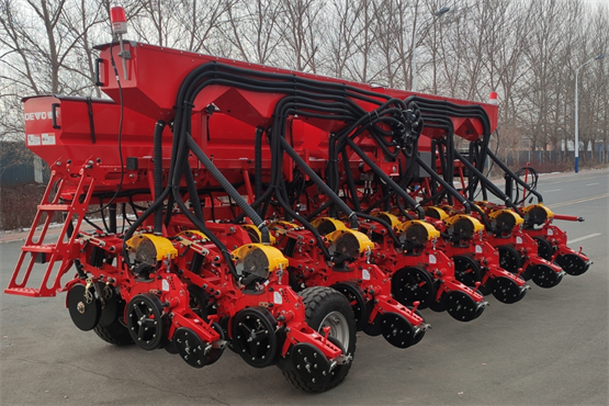 该机器作业速度8-12km/h,作业行数12、18行,可根据播种需求任意开启关停单体;采用独立电控排种系统,不受地轮传动限制,根据作业速度自动调节播种,快速更精准;气吸式负压吸种,有效杜绝空穴漏播现象,实现高速精密播种,适应更多播种速度;配备种肥下限感应探头,作业效率大幅提高。