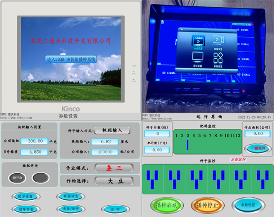 电驱播种、电控施肥,垄二垄三、自由切换,一键参数、一键上种,数据采集、多重监控,触摸操作、起落感应,单行控制、单行降密,地头地尾、播量正常。整机独立开发触摸屏全中文控制系统,操作习惯更符合国内用户需求。10寸触摸控制屏+10寸液晶显示屏:一块屏幕控制设备播种作业,显示作业过程采集的数据和预警;一块屏幕显示八个高清摄像头作业视频,让操作更加人性化。